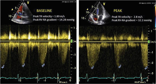 Peak tricuspid regurgitation jet velocity at rest (