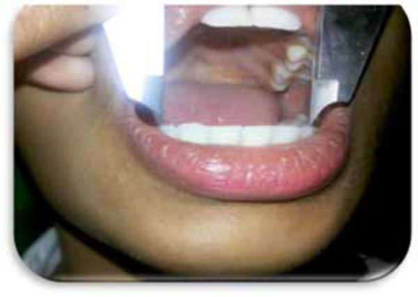 Measurement of mesiodistal width of mandibular canine by clinical examination.