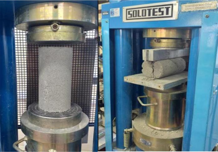 Experimental tests of compressive strength and tensile strength by diametral compression.